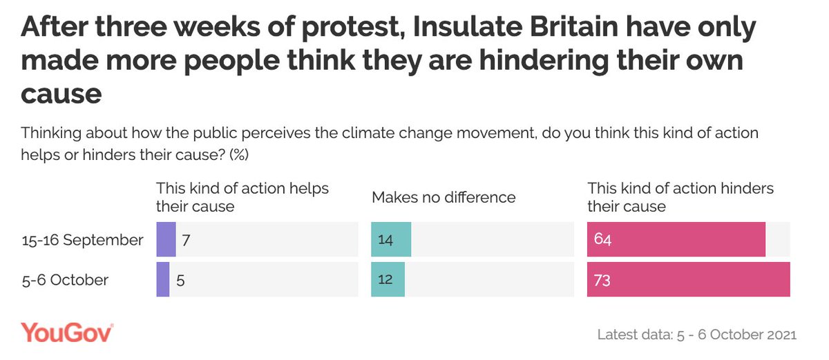 Yougov On Twitter And After Three Weeks Of Protest Insulate Britain Have Only Made More People Think They Re Actually Hindering Their Own Cause 64 Felt This In September And 73 Think It